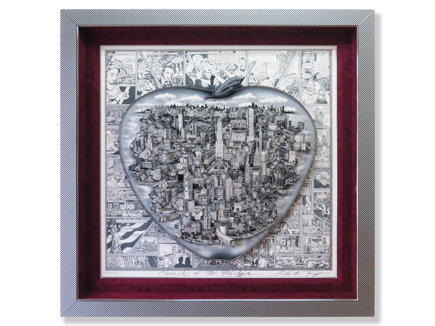 HOME作品案内3Dアートビッグアップル・ヒストリー(Dark)作品案内ビッグアップル・ヒストリー(Dark) 1.モールディング イメージ画像 ブルックリン橋やエンパイアステートビルなど有名な建造物がたくさん詰まったニューヨークの街並みがビッグアップルの中に所狭しと描かれています。 背景にはファジーノ・オリジナルのアメコミ風のイラストも描かれ、多くの人々が紡いできたニューヨークの歴史の物語を象徴しています。額サイズが1mを越える大きな作品で大迫力の一枚です。 2,500,000円(税別) イメージサイズ:86×86cmフレームサイズ:111×111cm制作年:2023年 詳細はメールにてご連絡いたします送料無料 ※フレームサイズは額の仕様により若干変わる場合があります。 ビッグアップル・ヒストリー(Dark) 2,750,000円(税込)2,500,000円(税抜) 数量 個