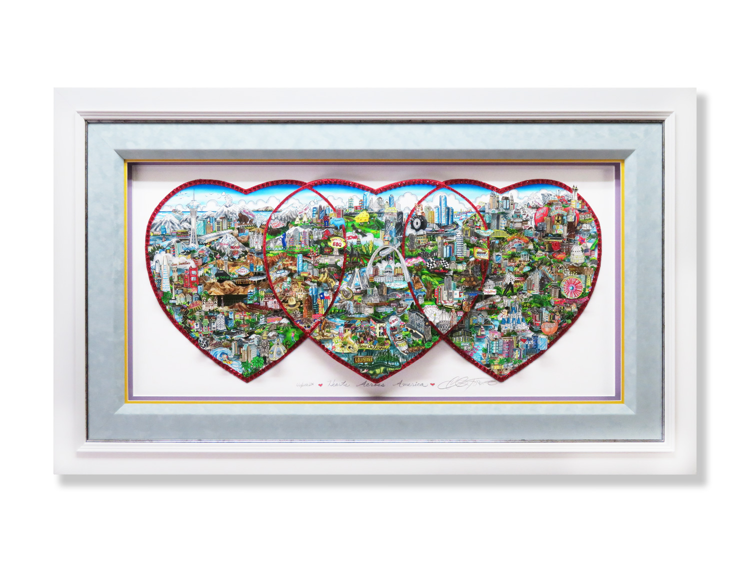 東西に渡って様々な文化が広がるアメリカを、ハートでつないでいるような素敵な作品です。