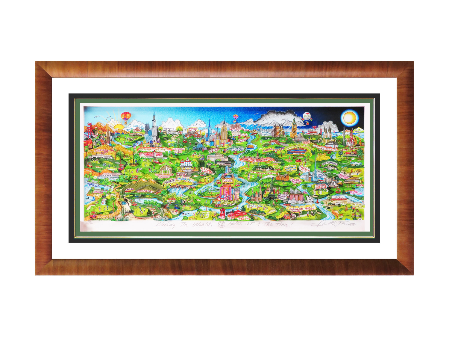 キャンバスいっぱいに、世界中のゴルフクラブが描かれた壮大な作品です。